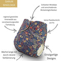 Dehnbare Außenstoffe eignen sich besonders für voluminösere Saugeinlagen (Mulltücher, Höschenwindeln) und etwas größere Wickelkinder. Windelinge mit Canvas und Tragetuch Außenstoffen eignen sich gut für den Übergang von Winzlingen zu Windelingen.